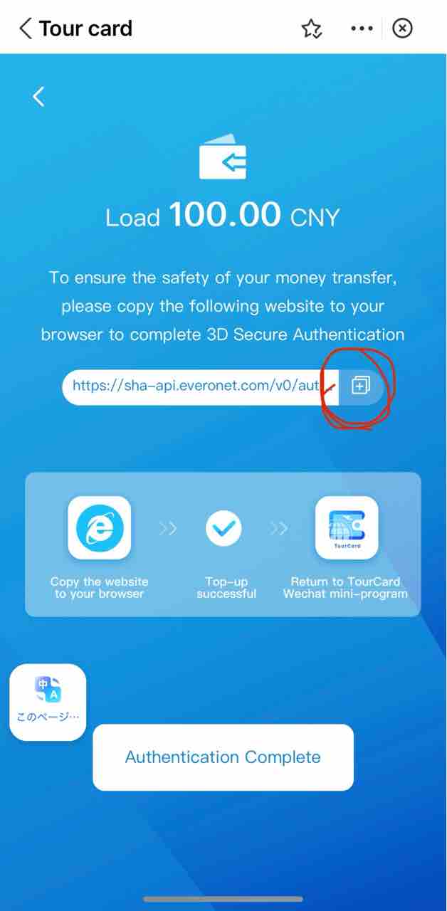 その認証が完了してから画面下部のAuthentication completeボタンを押すと