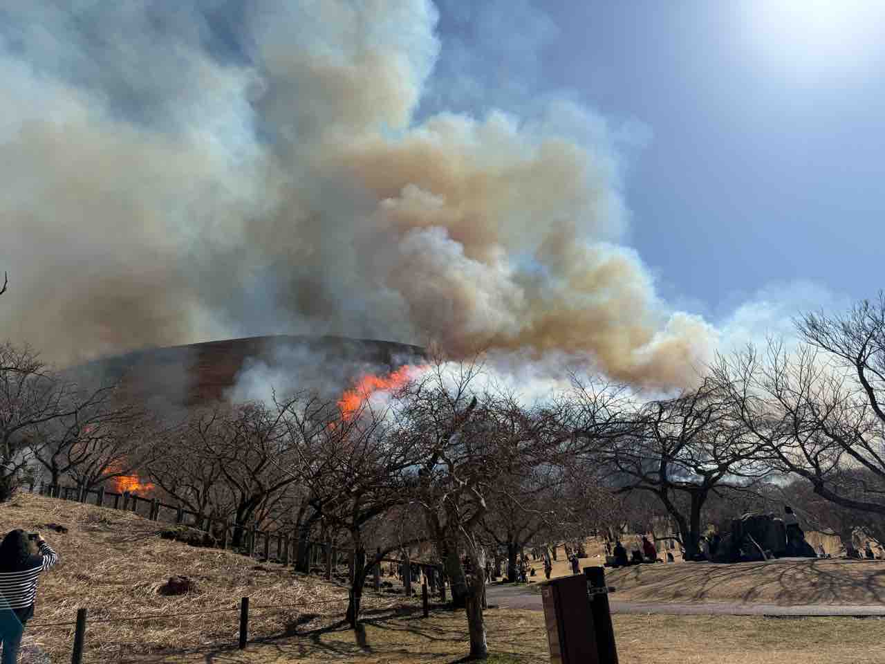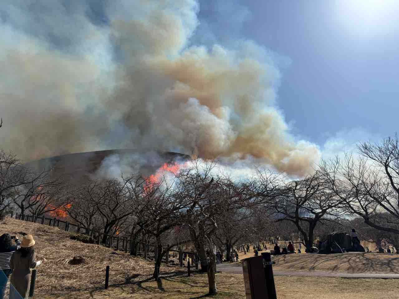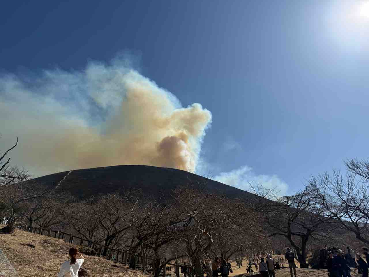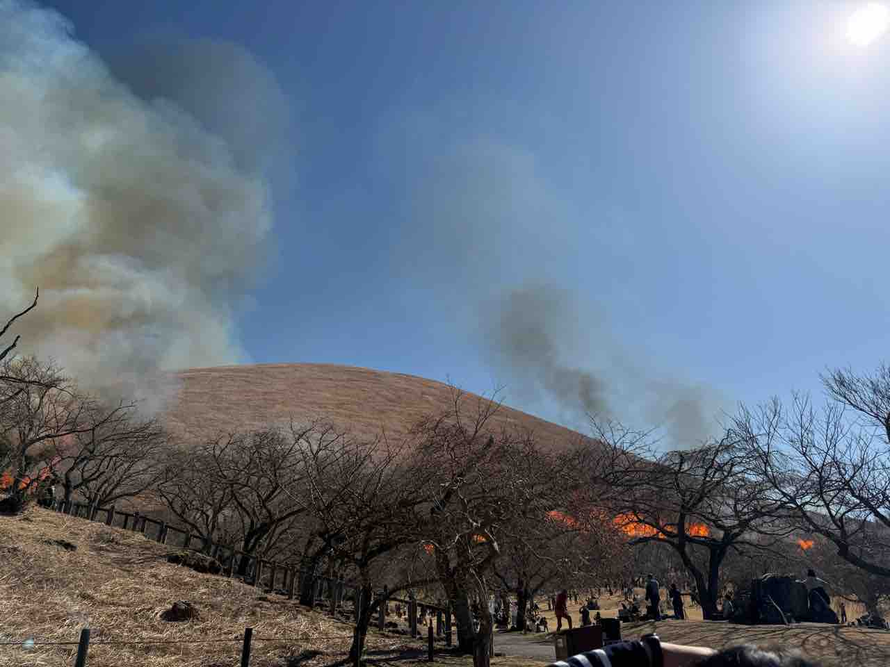 2026年02月24日 伊豆 大室山の山焼きを見る 大室山の山焼きを見てきました!近くは車通行止めだったりして行きにくいので、友人宅から歩きました。焼く前点火するとパチパチ拍手みたいな音がここからでも聞こえます。かなり離れてるのに熱気を感じます一瞬で全部燃えましたAfter