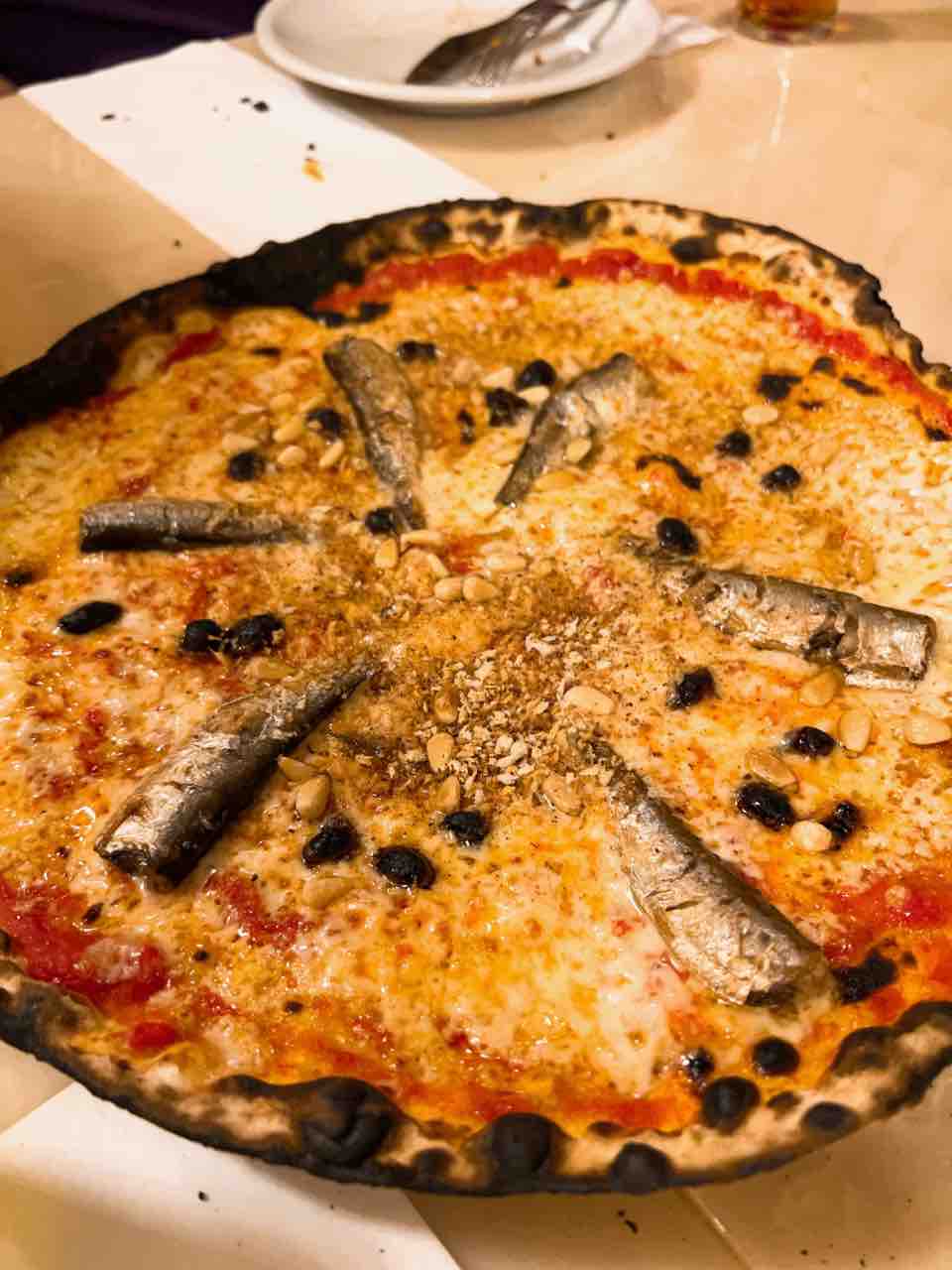 その時大変おいしかったのがイワシとレーズンと松の実のピザ。