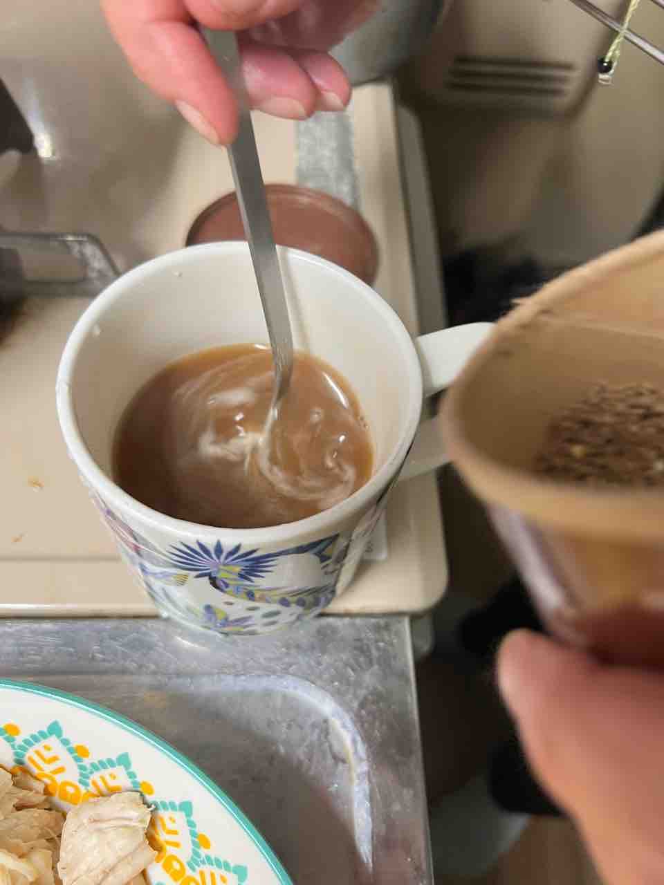 本来上からかけるクリームはバターたっぷりなんですが、乳製品に耐性がないので黒蜜をかけました。