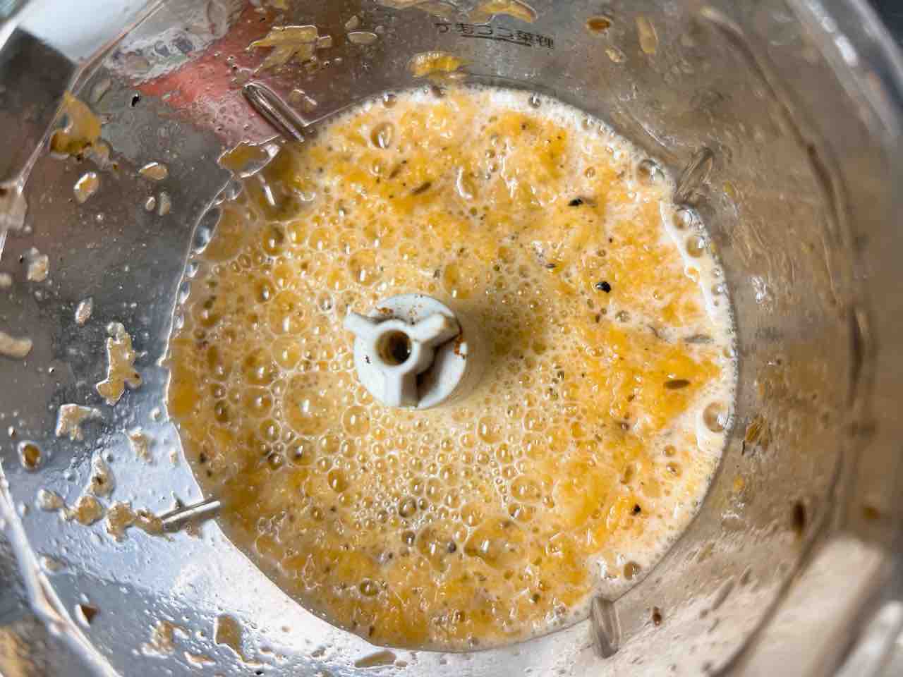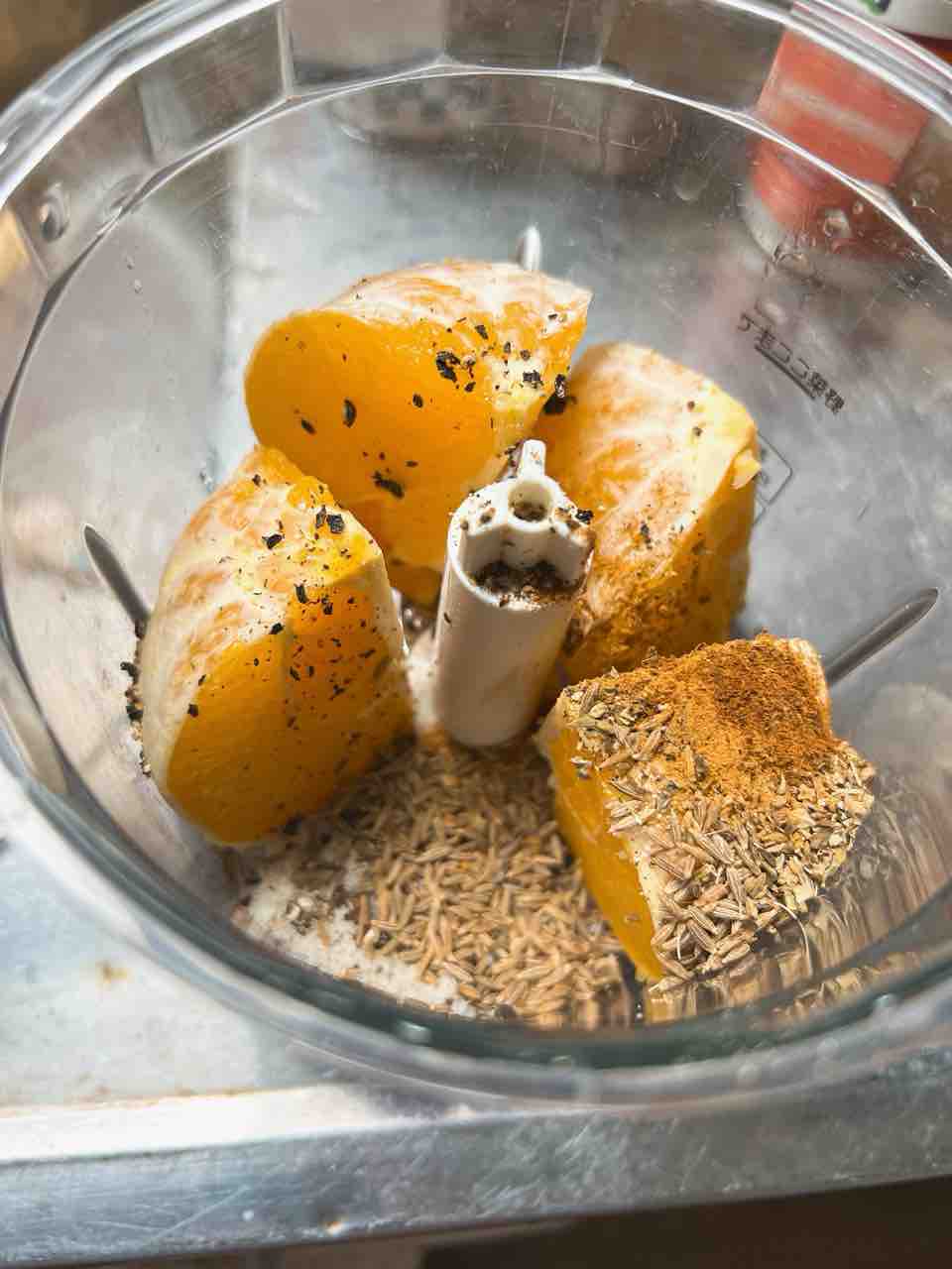 トマティージョ、玉ねぎ、にんにく、唐辛子、パクチーをミキサーにかけます。