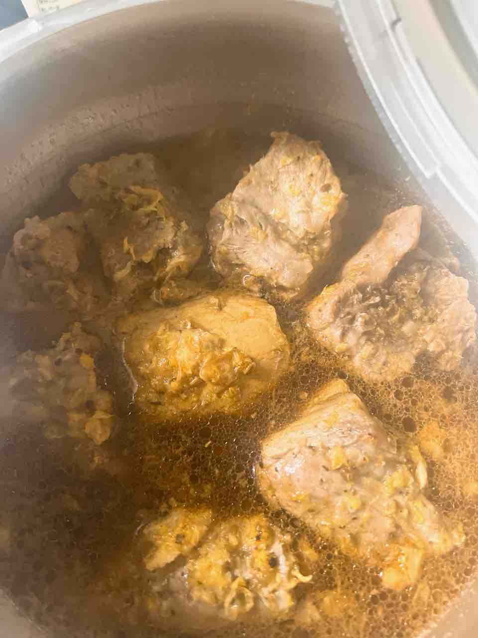 トルティーヤチップスにシチューみたいなソースをかけていただきます。