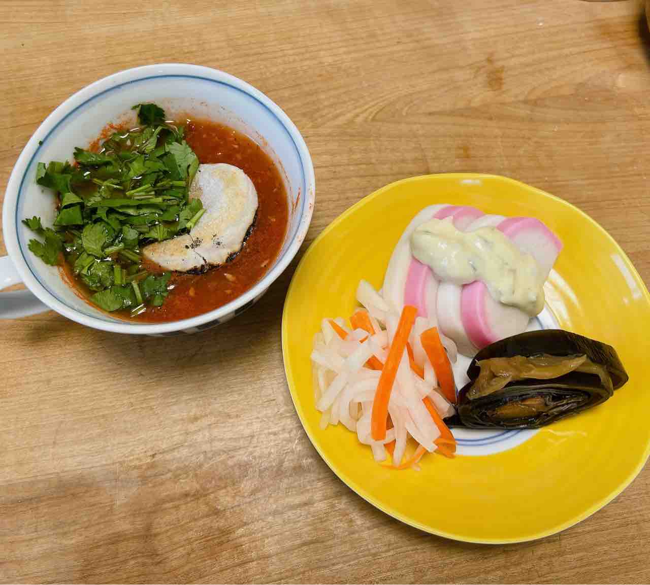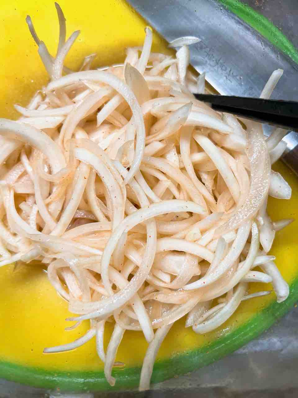 千切りキャベツもなかったので豆苗で代用しました。