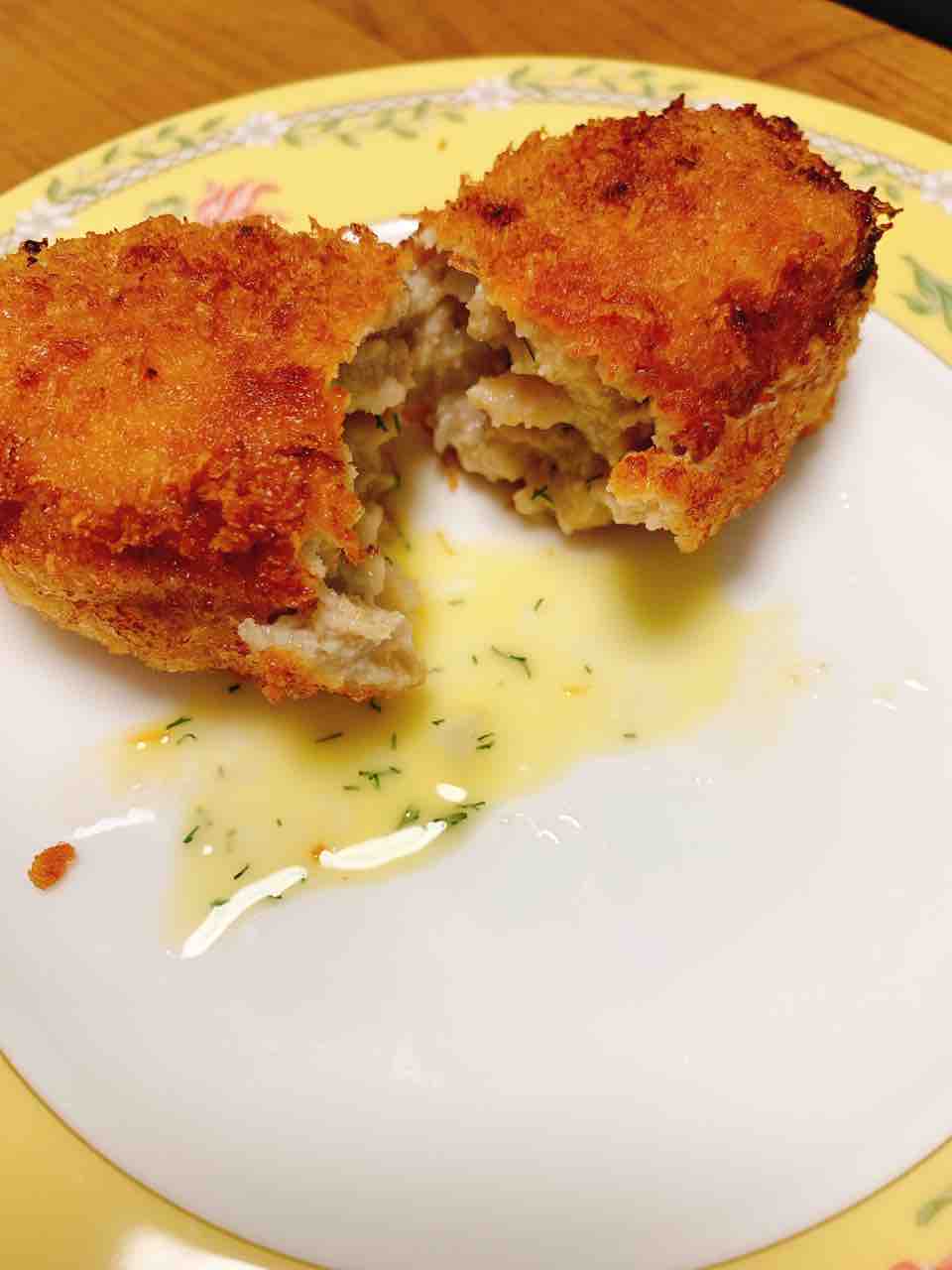 チキンカツの中からバターソースが出てくるカロリー爆弾、キエフスキーカツレツ。