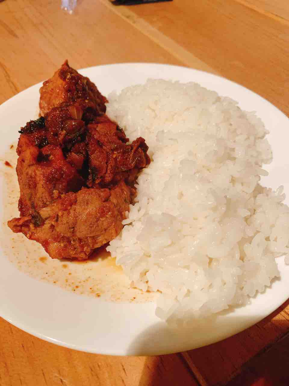 その後圧力鍋に焼いた肉とマリネ液全部、昨日取った唐辛子の出汁を入れて、圧がかかってから45分煮る。